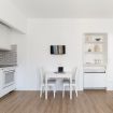 L’appartamento dispone di una camera da letto con letto matrimoniale, soggiorno con divano letto singolo, cucina a vista e bagno con doccia.